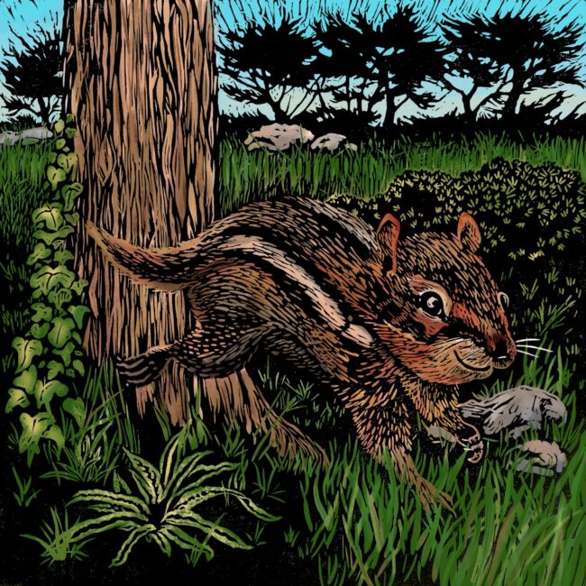 Each illustration of Curious L’il Lilli was printed by Illustrator, Rich Brimer with black ink then scanned. The image was then colorized on an iPad using Procreate using a stylus pen. Below is an example of Chippy the Chipmunk being colorized.
